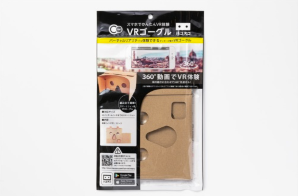 同じく100円ショップのセリアでは100円(税込)のVRゴーグルが売られており、これはカードボード型と呼ばれる段ボール製のVRゴーグルです。