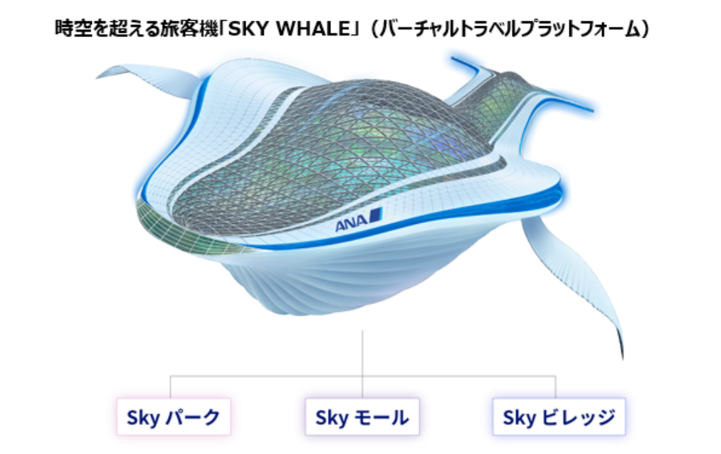 ANA NEO株式会社は、バーチャルトラベルプラットフォーム「SKY WHALE」を開発しました。ユーザーはアバターを通して仮想空間での旅行やショッピングを体験できます。
