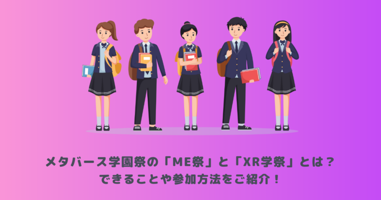 そこで本記事では、代表的なメタバース学園祭である「ME祭」と「XR学祭」について詳しく解説していきます。