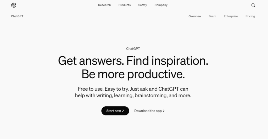 - 公式サイトにアクセス:OpenAIの公式サイト(https://www.openai.com)にアクセスします。