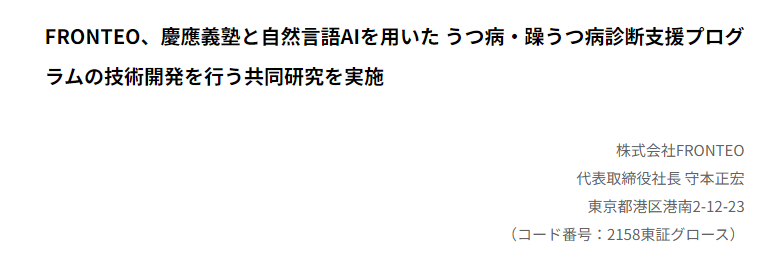 株式会社FRONTEOは、近年目覚ましい発展を見せる自然言語処理技術を活用して、認知症の診断支援をサポートするAIを開発しました。