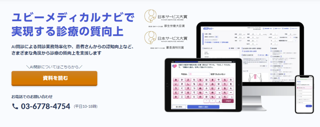 Ubie株式会社が開発する同AIサービスでは、患者がタブレット経由で問診票に入力することでカルテの作成を自動化します。