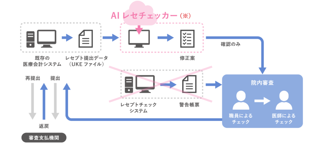レセプトチェックはミスの許されない重要なタスクなので、ここにAIを導入することで業務フローの正確性と効率性を改善します。