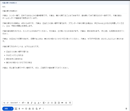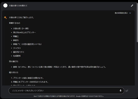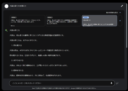 試しに、最近自宅で楽しんでいる家庭菜園関連の質問をしてみました。