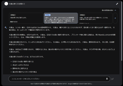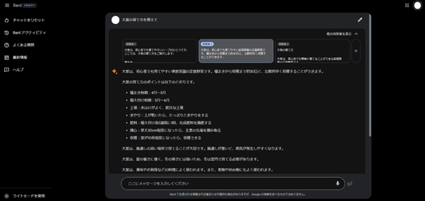 Bardならではの特徴として、複数の回答を提示してくれる点が挙げられます。
