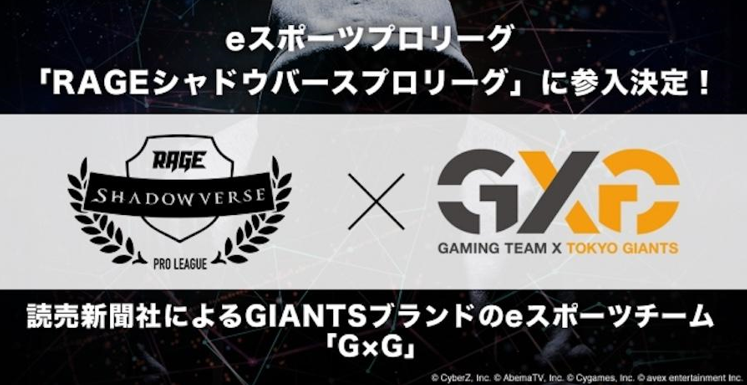 2019年、読売巨人軍創立記念日にちなんで、eスポーツチーム「G×G」(ジー・バイ・ジー)を設立し、「RAGE Shadowverse Pro League」に参戦しました。