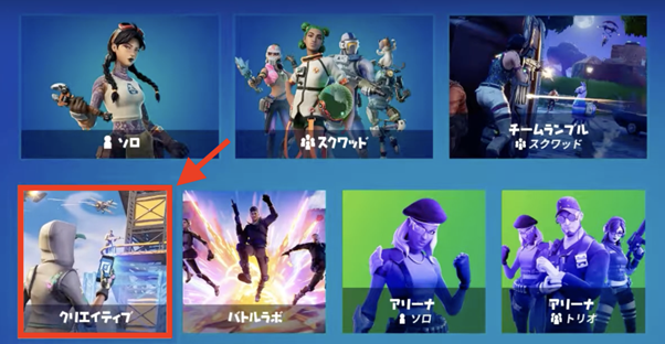 フォートナイトで島を作るには、まずはプレイモードをクリエイティブモードに切り替えなければなりません。