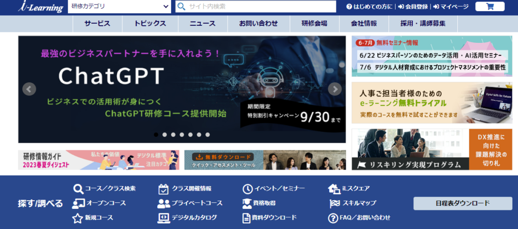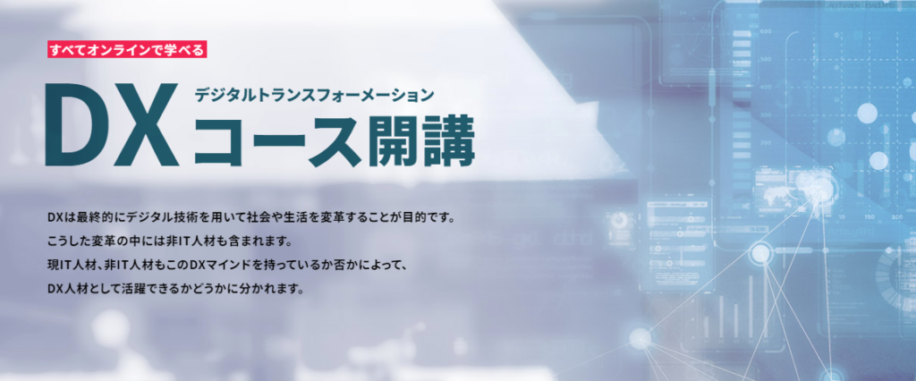 ITスキル研修やデジタル人材養成講座なども充実しており、DXに関するすべてのことを学ぶことができるでしょう。