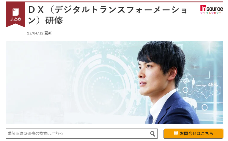 インソースのDX研修サービスは、デジタル技術を活用して業務やビジネスモデルを変革するための人材育成を目的としています。