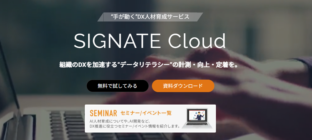 SIGNATEでは、データ活用能力を高めるための『SIGNATE Cloud』というクラウドサービスを利用したDX研修を実施しています。