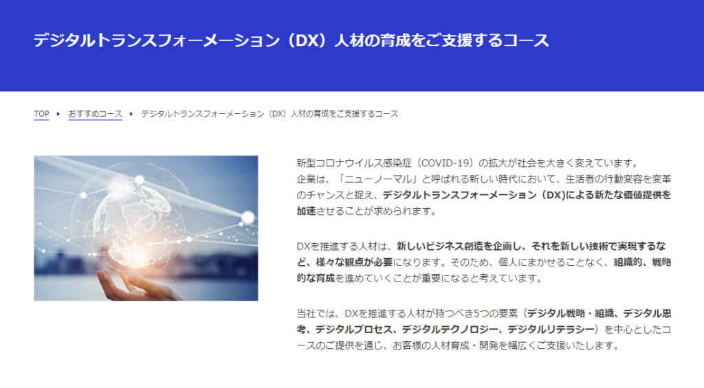 DX時代に求められる人材育成のニーズに幅広く応えるサービスが提供されています。