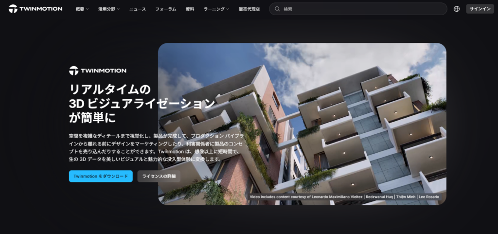 Epic Games社が提供する、建築ビジュアライゼーションに特化したリアルタイムレンダリングソフトです。