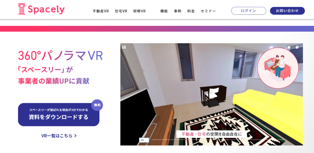 VRコンテンツには、360度パノラマ画像を用いた簡易型、または自由に移動可能なウォークスルー型など、さまざまな形式があります。